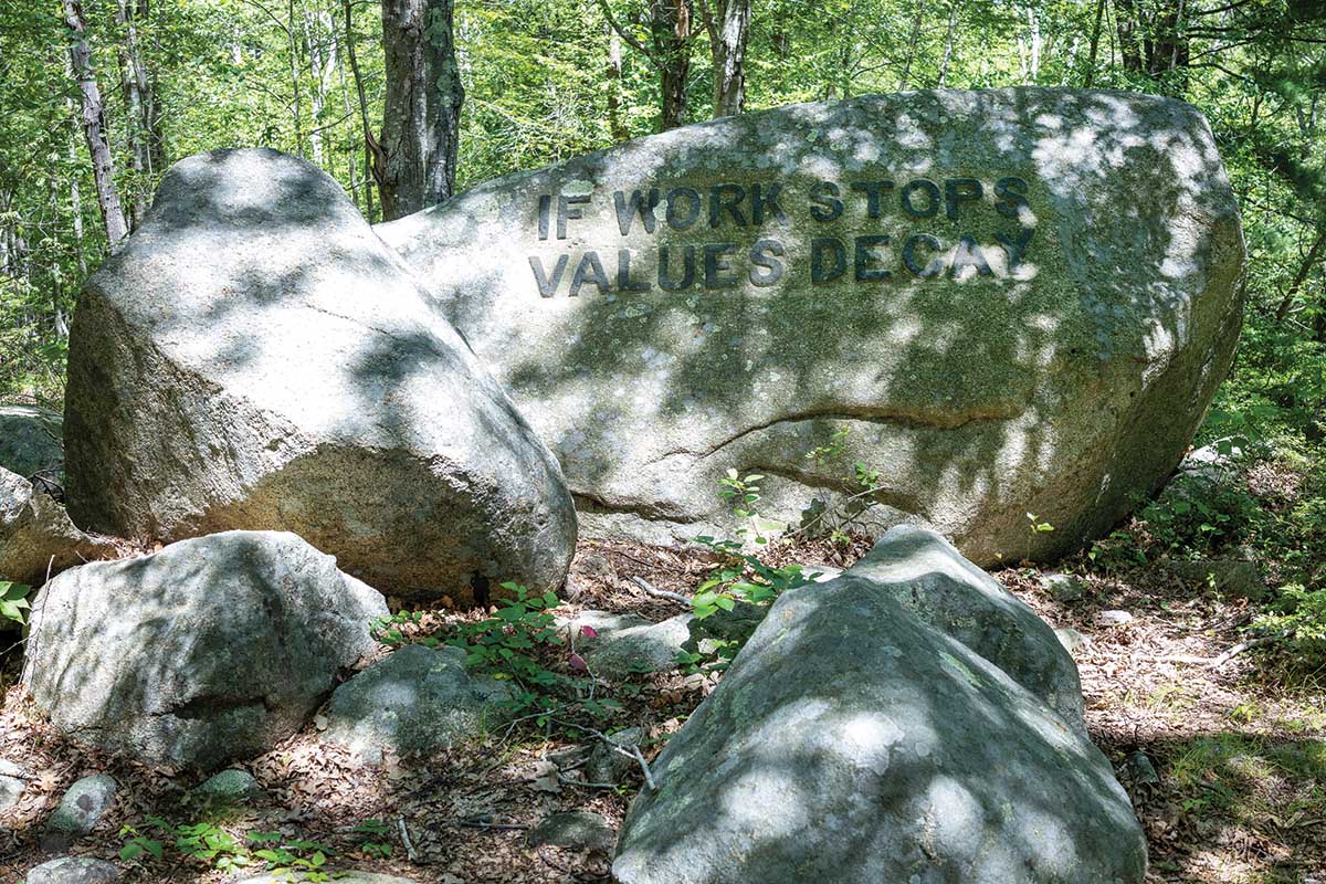 “I think everybody can learn from those mottos. Isn’t it great that you can go way out in the woods and see that somebody was inspired enough to say: ‘This is the Depression. People are out of work. Let’s get them working, and let’s find a place where we can put these mottos so people can come and visit?’” she says. “I think they’re quite remarkable myself—and, as I grow older, I appreciate them more.”