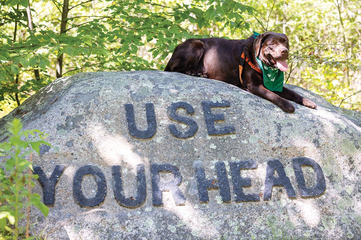 Meanwhile, Gig Babson honored her ancestor’s legacy with Pippi Rocks, a 2023 children’s book about the boulders’ lessons interpreted through the eyes of her mischievous black Labrador retriever, Pippi. Her book, a popular keepsake at local book shops, adds some modern touches, with updated mottos referencing kindness and love.